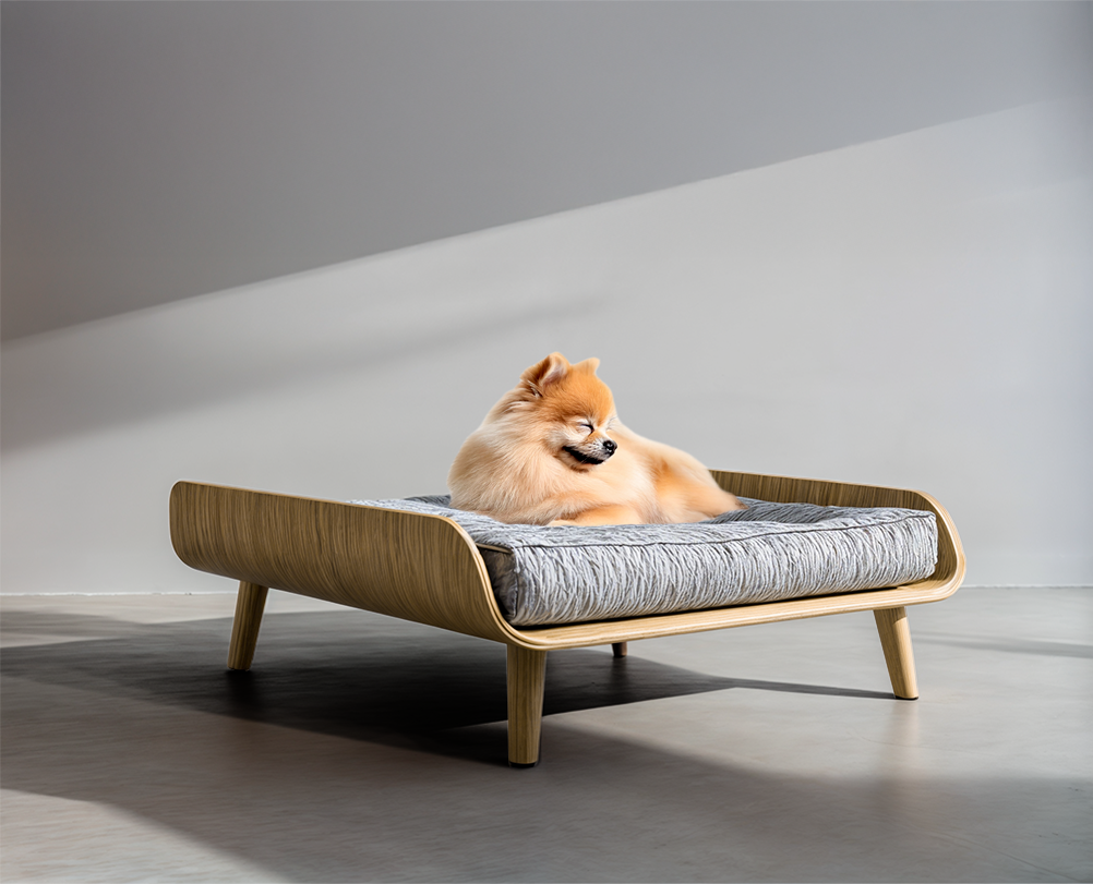 A stylish and timeless resting space for your furry friend! Its ergonomic design stands out with an elegant look, while the natural wood material ensures long-lasting use. The soft and supportive cushion provides maximum comfort, and its lightweight, sleek structure perfectly complements your home decor. Your pet will never want to leave this cozy bed!