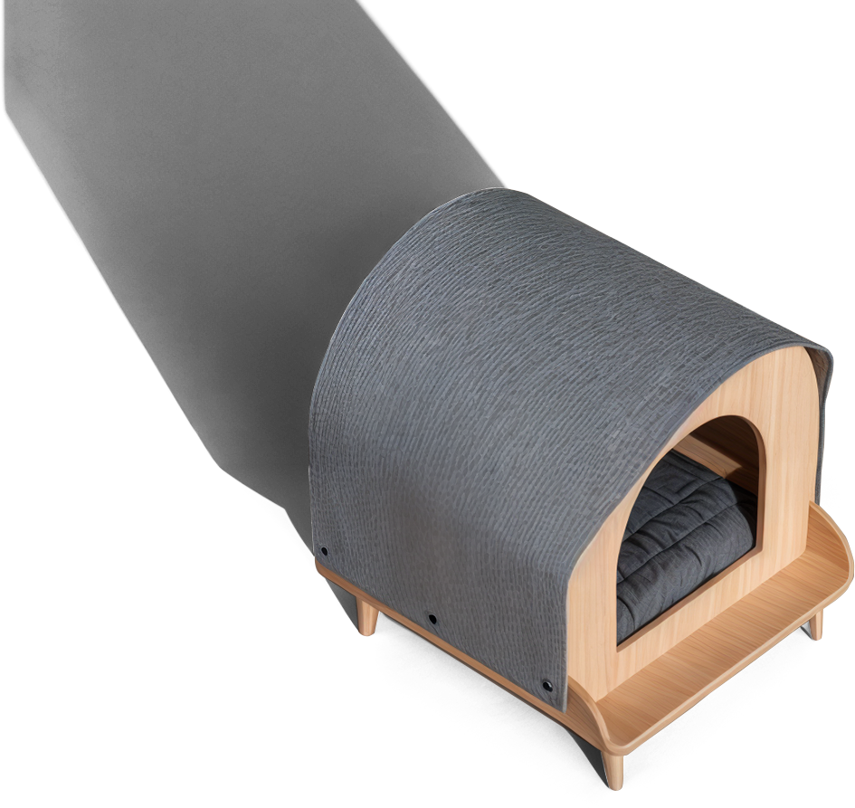 Carefully crafted with natural wooden materials, Nook provides your pets with a safe and comfortable space. Its warm and modern design seamlessly blends into any living area, combining aesthetics with functionality. 37x61x42 cm 6 Kg